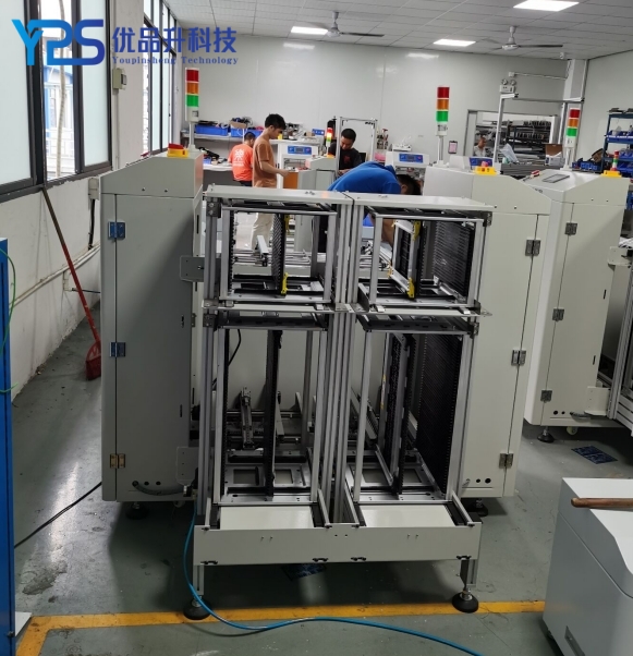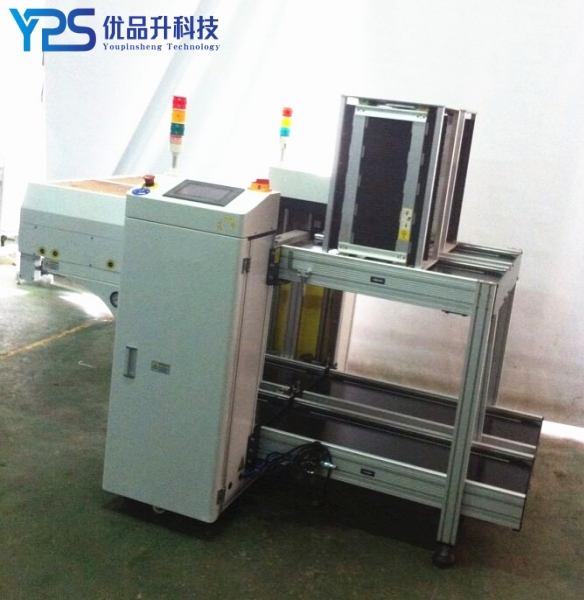 1.SMT automatic PCB NG/OK unloader machine structural principle of this machine is composed of an automatic lifting platform, a material tray inlet and outlet conveying section, and a translation screening mechanism;